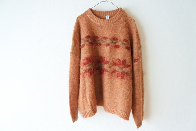 SO モヘアライクジャガードプルオーバー size Free 着丈60cm 身幅62cm ポリエステル60% ナイロン30% ウール10% 両面ジャガードでふんわり仕上げ、ヴィンテージライクの柄で起毛させることにより懐かしさや温かみを感じさせるプルオーバーです。 ※照明等の関係により、実物と多少色合いが異なりますので、ご了承下さい。