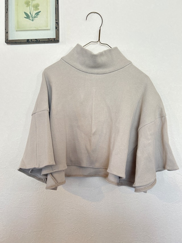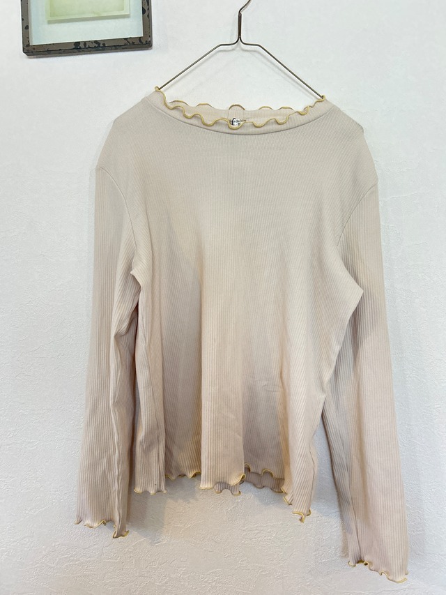 handmadeDON フリルニットカットソー やわらか2wayテレコ ベージュ コットン96% ポリウレタン4% size L 着丈約58cm 身幅約50cm 袖丈約57cm ※置いた状態でのサイズ感です ※照明等の関係により、実物と多少色合いが異なりますので、ご了承下さい。
