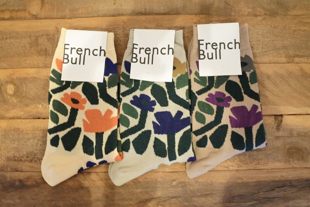 French Bull フローレソックス 綿73% ナイロン27% size 23〜25cm length 19cm 風に揺れる花々をモチーフにしたソックスです。ベースはガス焼処理により毛羽を抑えたシルケットの綿糸で、薄く編み立てました。つま先はリンキング仕様であたりがなく快適な履き心地です。甘すぎない大胆なタッチのお花柄が足元を華やかにしてくれる1足です。 ※照明等の関係により、実物と多少色合いが異なりますので、ご了承下さい。 ※こちらの商品は定形外郵便、レターパックライトも対応しておりますが、郵便受けへのお届けになります。紛失した場合など、弁償は致しかねますのでご了承下さい。直接の受け取りをご希望の方は「レターパックプラス」をお選び下さい。