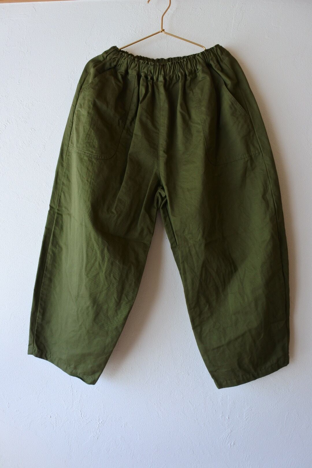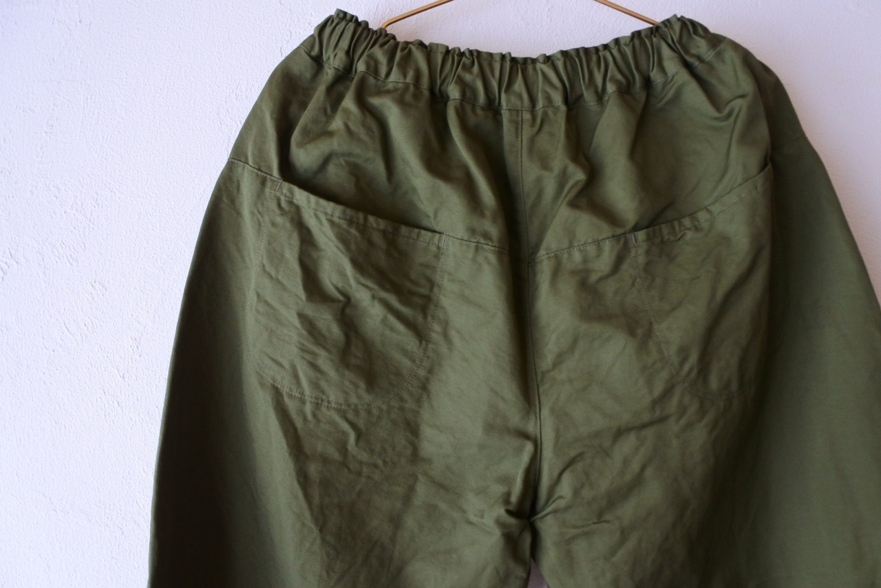 コットンリネンカルゼ後切替コクーンパンツ/オリーブ