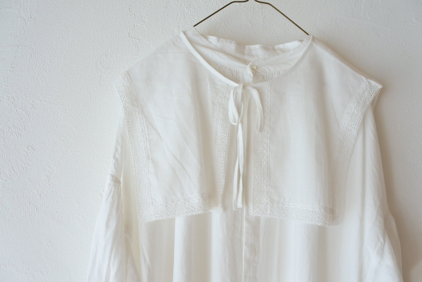 SO ノーカラーギャザーワンピース レース襟付き(SA-0506)