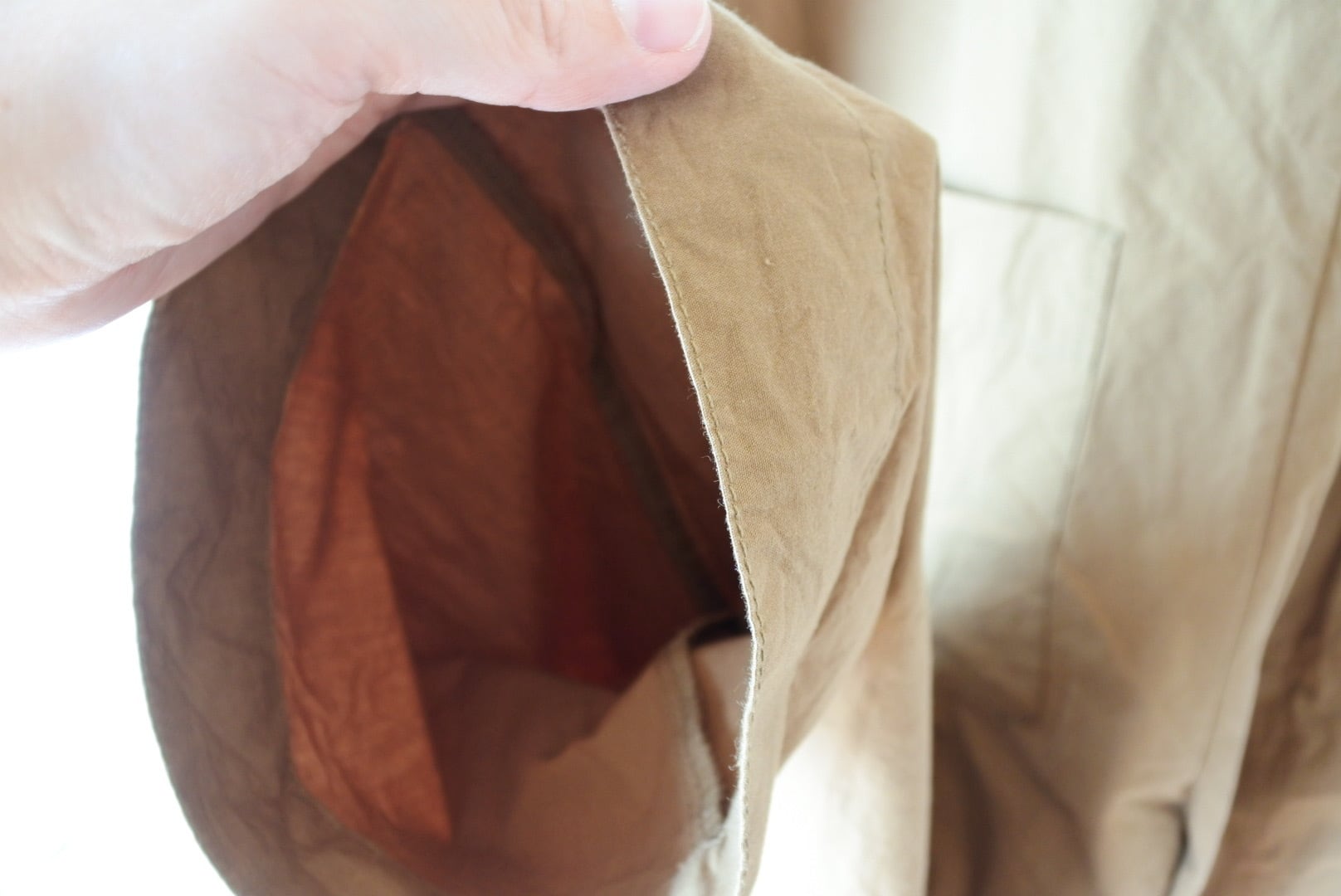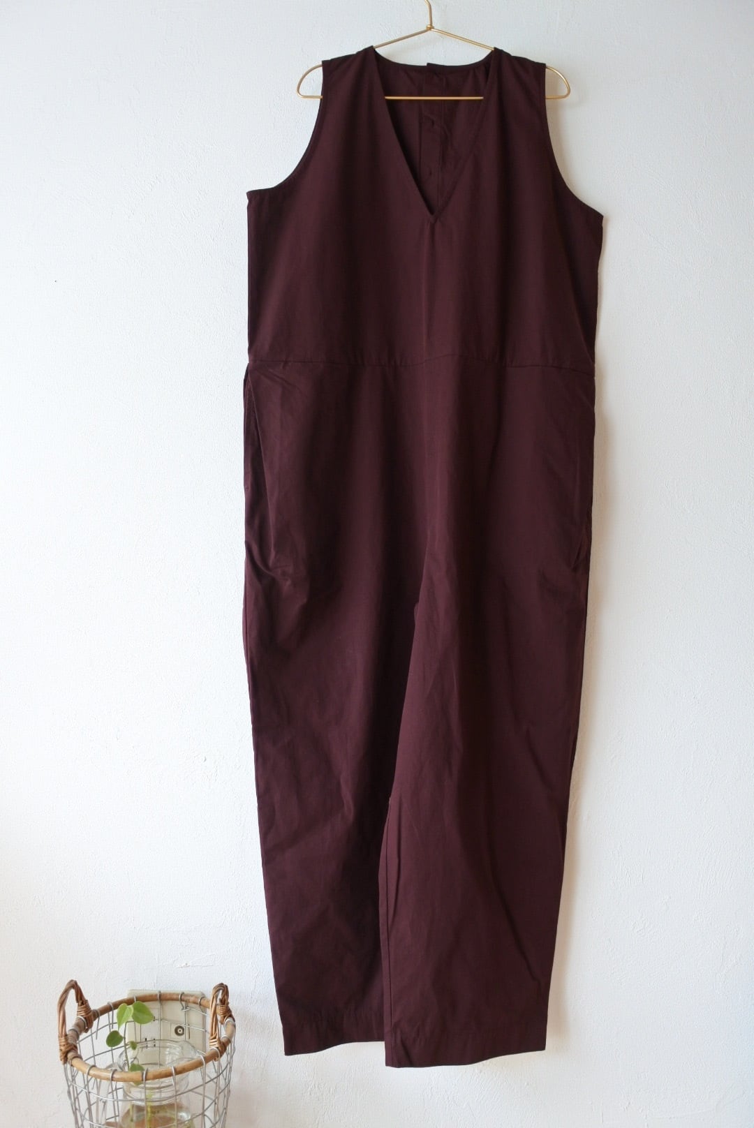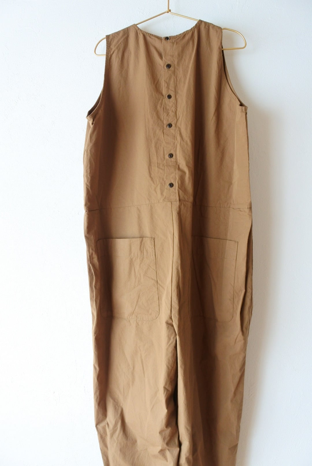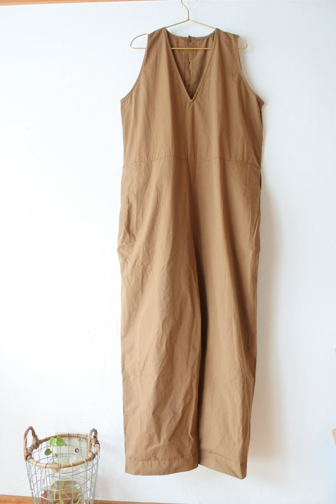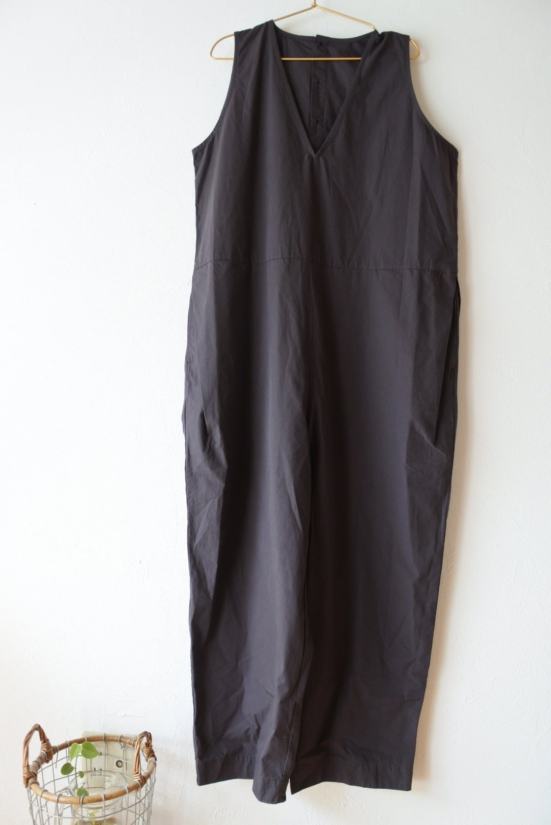 両脇にタックを入れ、裾に向かってテーパードをかけています。深めのVネックラインですので、フリルなど甘めなアイテムとも好相性です。後ボタン開きで着脱しやすくしています。