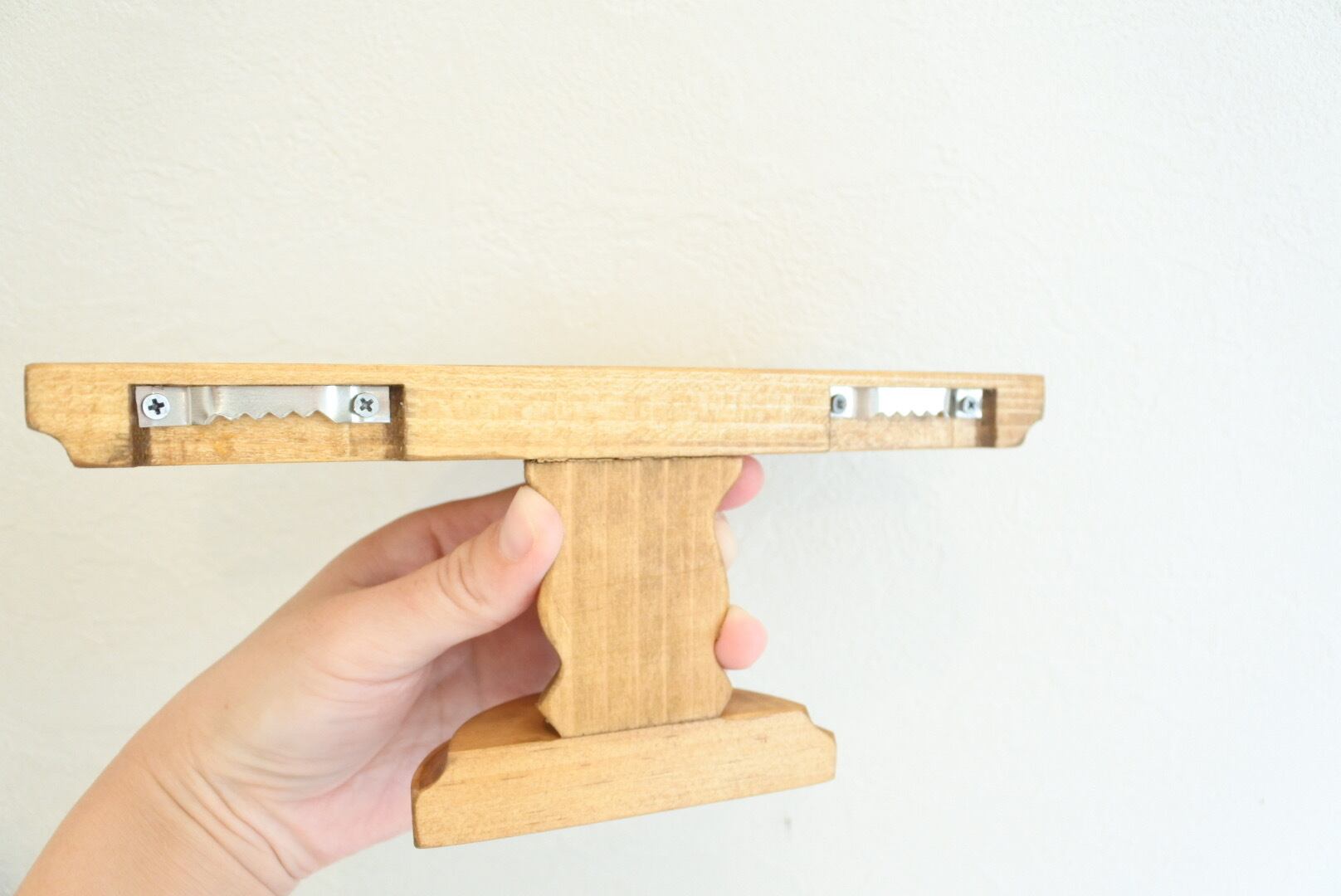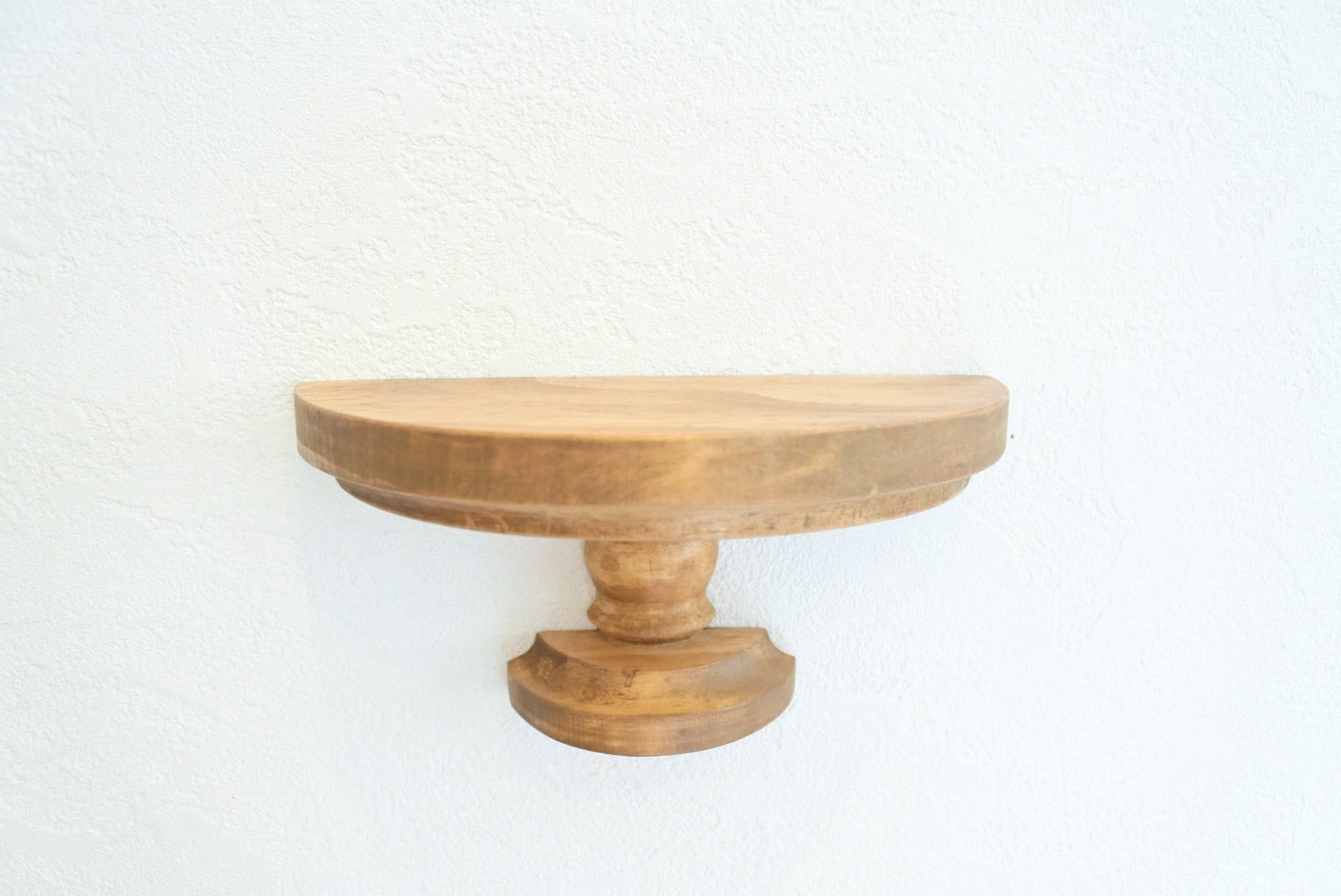 アンティークのような雰囲気を持つパイン材のウォールスタンドシェルフ。オブジェや植物、写真立てなどを飾ることで、壁面がお気に入りのスペースに変わります。軽量なパイン材を使用し、さらにアンティークのような重厚感を出すために一つ一つ手作業で塗装を施しています。本体の背面に2箇所ビスを引っ掛けるための金具があるため、壁にビスなどを打ちこんで、引っ掛けるだけで簡単に設置いただけます。(※取り付け用のビスは付属しません。)自然なパイン材の木目が美しく、ディスプレイ用としてはもちろんメガネやアクセサリー、鍵など日常の小物を置くのにもおすすめです。玄関、洗面所、リビングなど様々な場所でお楽しみいただけるシェルフです。(※天然木を使用しているため、木目や節の出方、色合いに個体差があります。予めご了承ください。)