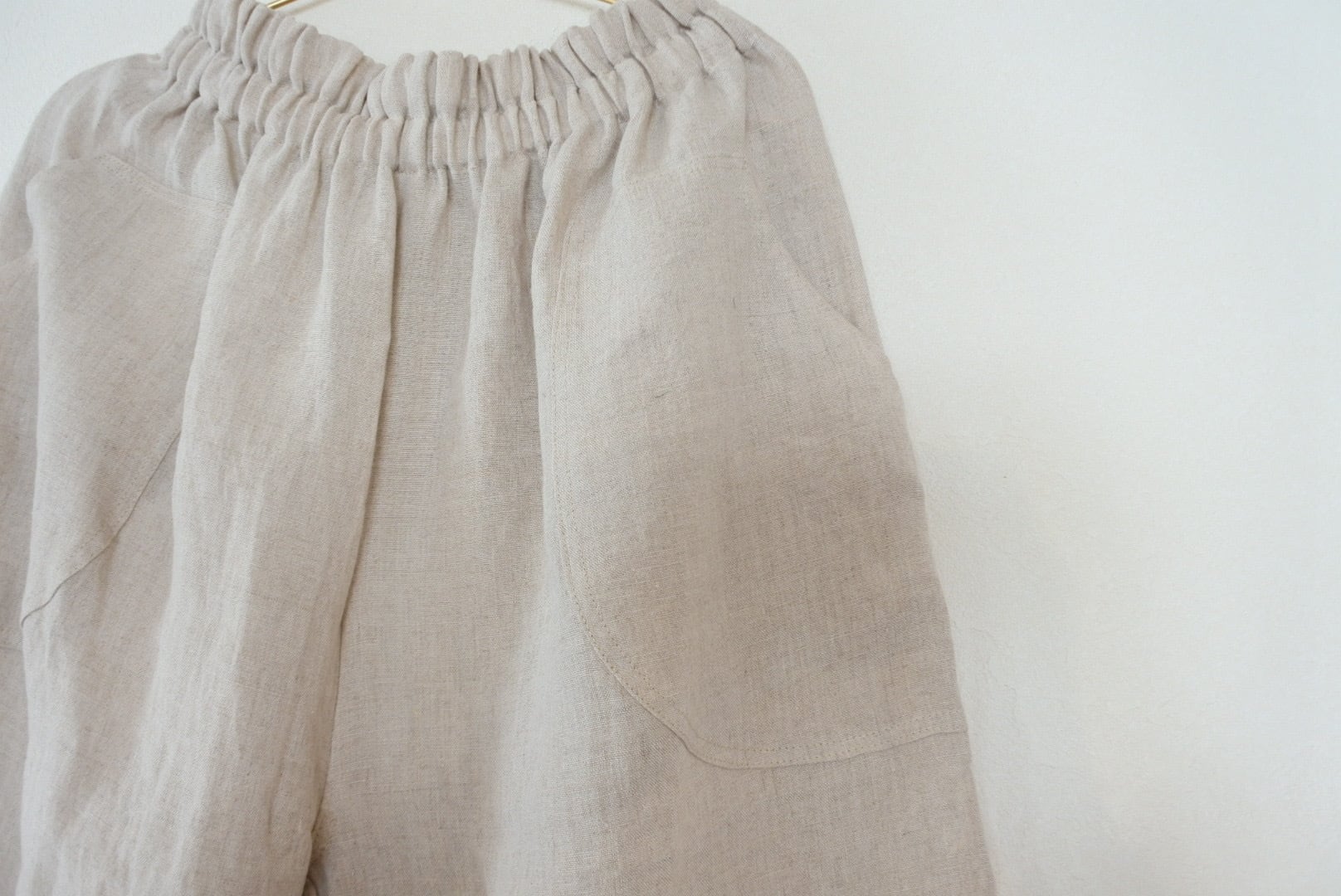 リネン素材で透け感がありますので、秋冬はレギンスなどと合わせてお楽しみください