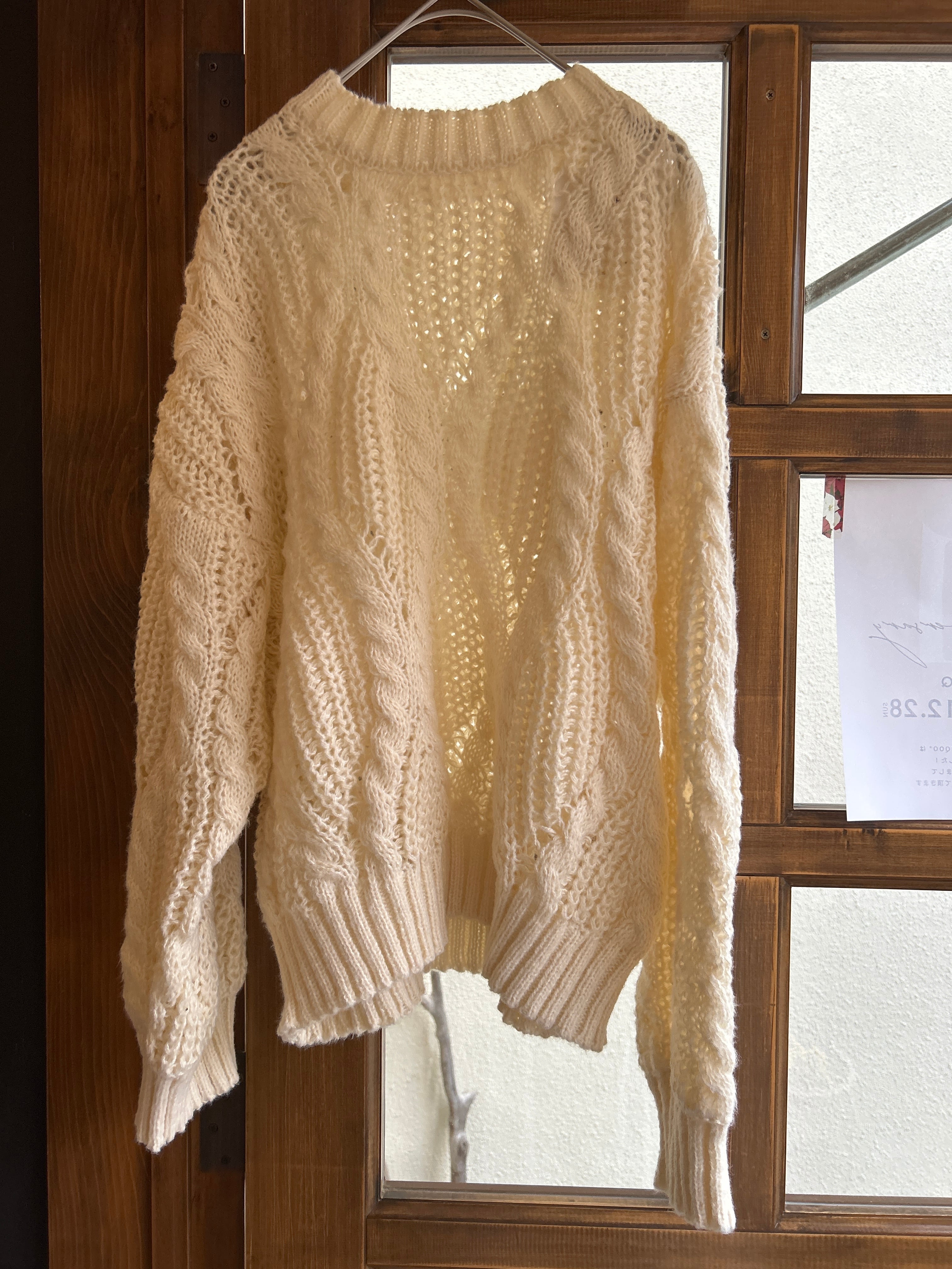 ニット レディース トップス セーター ダイヤ柄 ケーブル編み 透け感 クルーネック フェミニン キレイめ 体型カバー 大人カジュアル 高見え 肌触り 定番デザイン 上質 着やせ 着回し 大人の定番 華奢見え