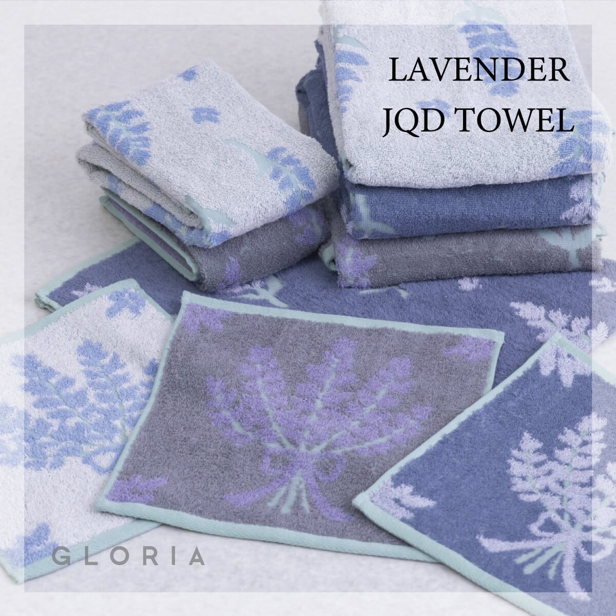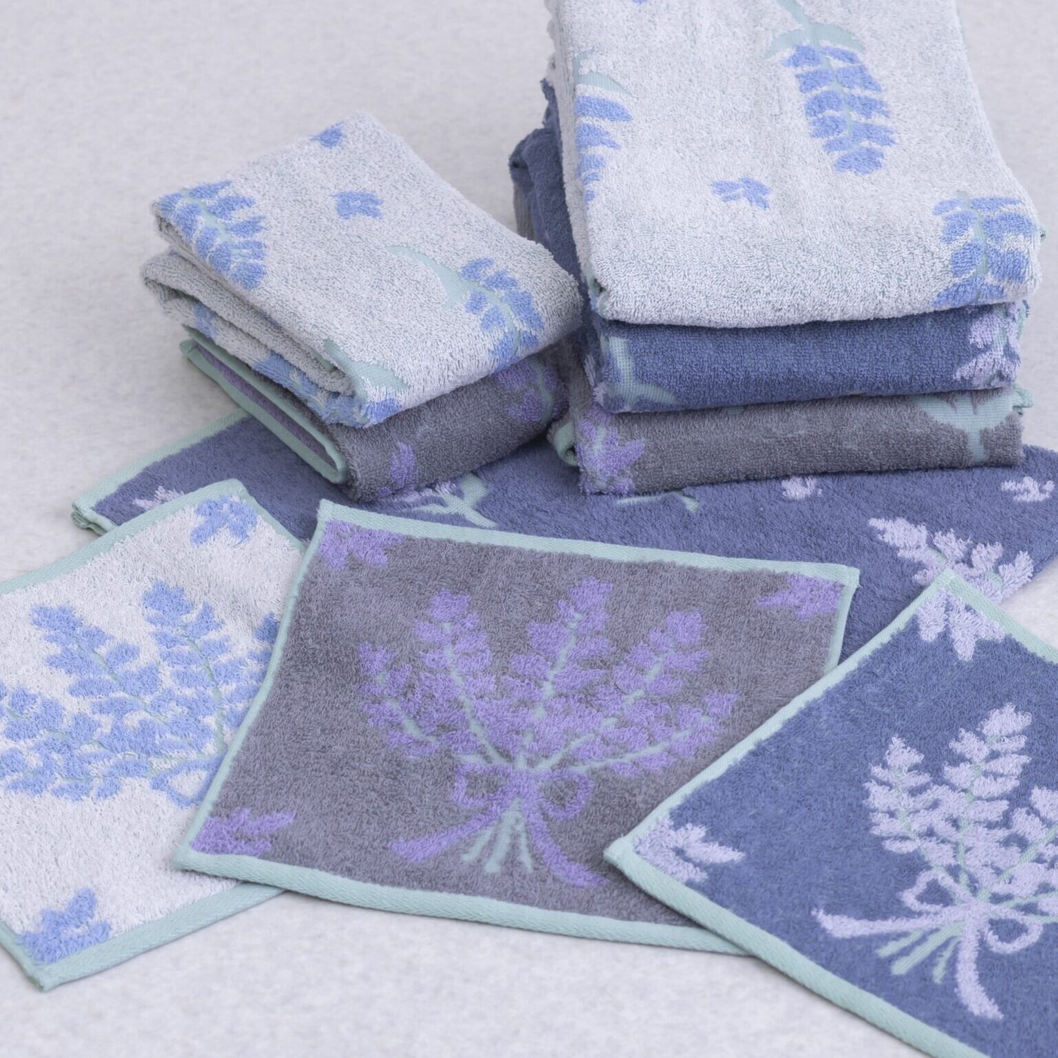 ラベンダー柄のデザインがおしゃれなタオルシリーズ。