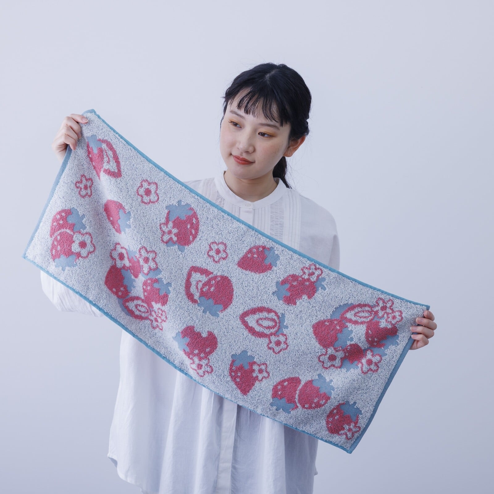 いちご柄がかわいいジャガード織りタオルシリーズ。やわらかなコットン100%で、肌にやさしく心地よい使い心地です。ハンカチ・フェイスタオル・バスタオルの3サイズ展開で、シーンに合わせて活躍します!持ち歩きにもギフトにもぴったりな華やかなデザイン♪お部屋や日常を明るく彩るアイテムです。
