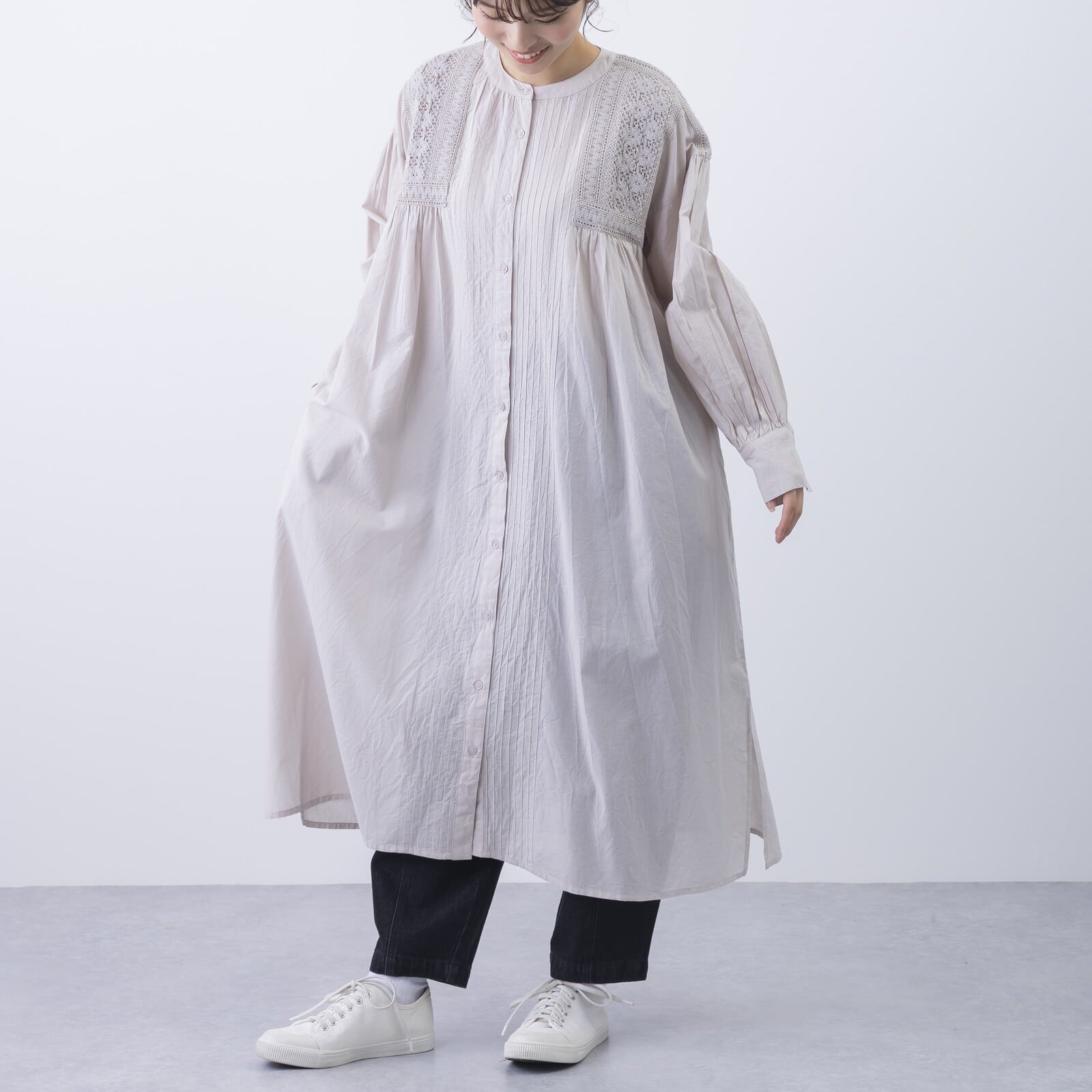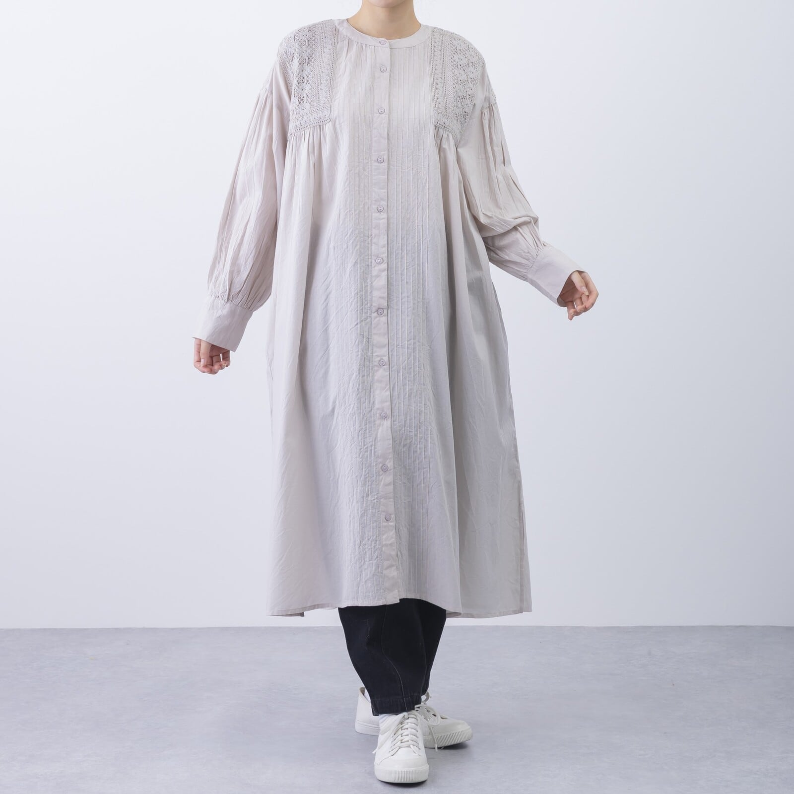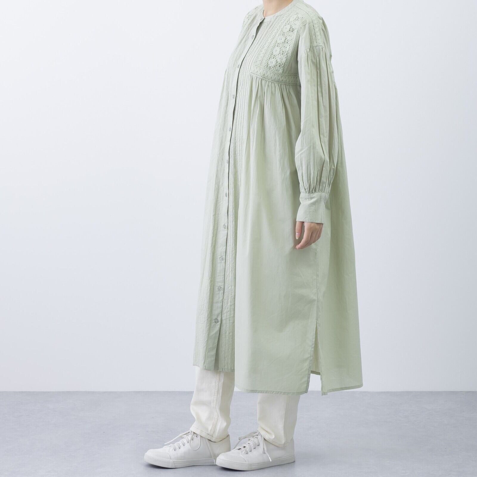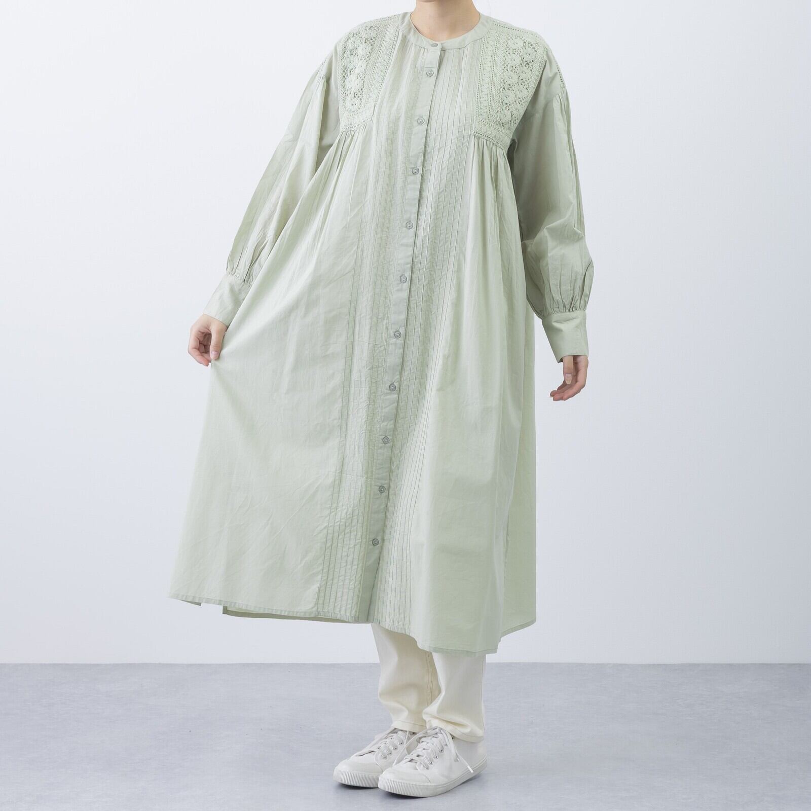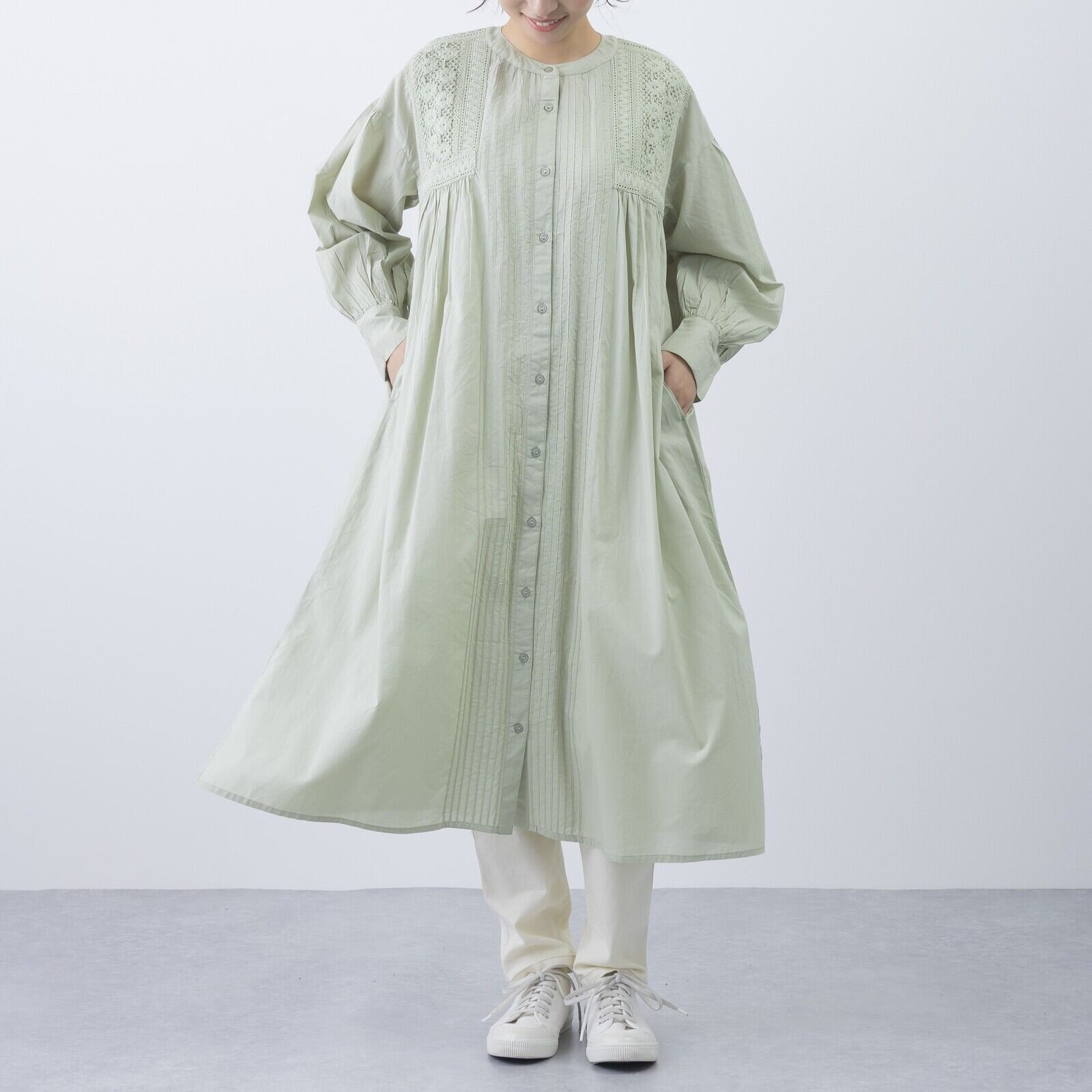 ピンタック&レース前開きワンピース