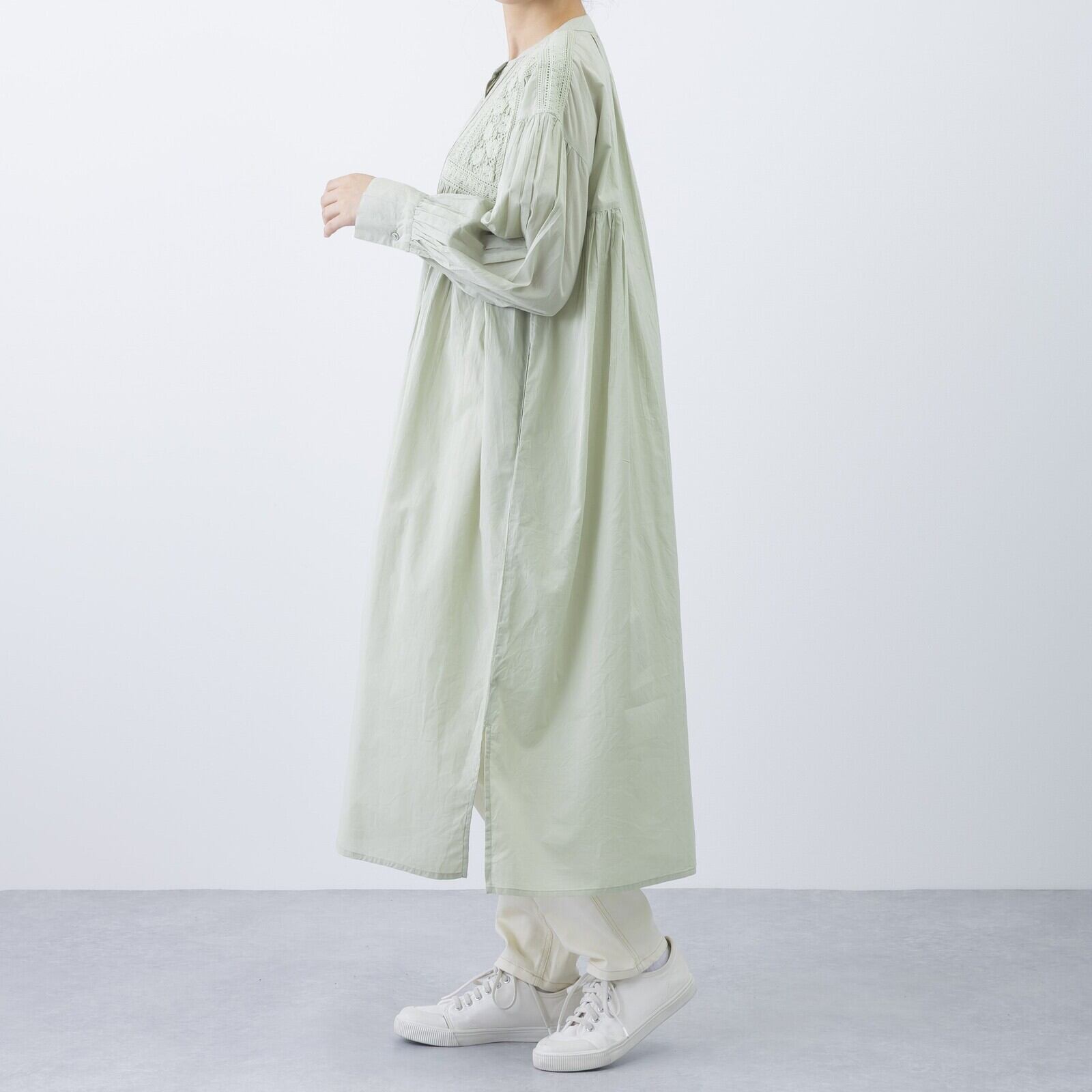 軽やかなコットン素材に、繊細なピンタックとレースを施したエアリーなワンピースです。