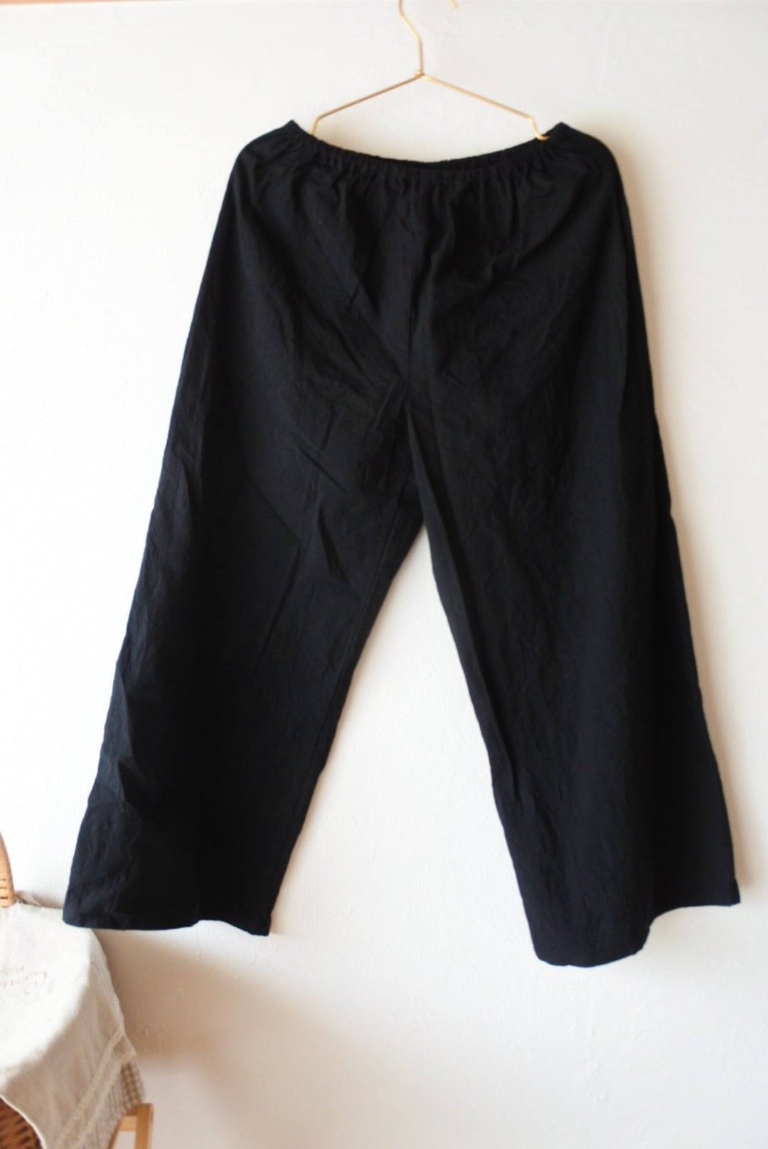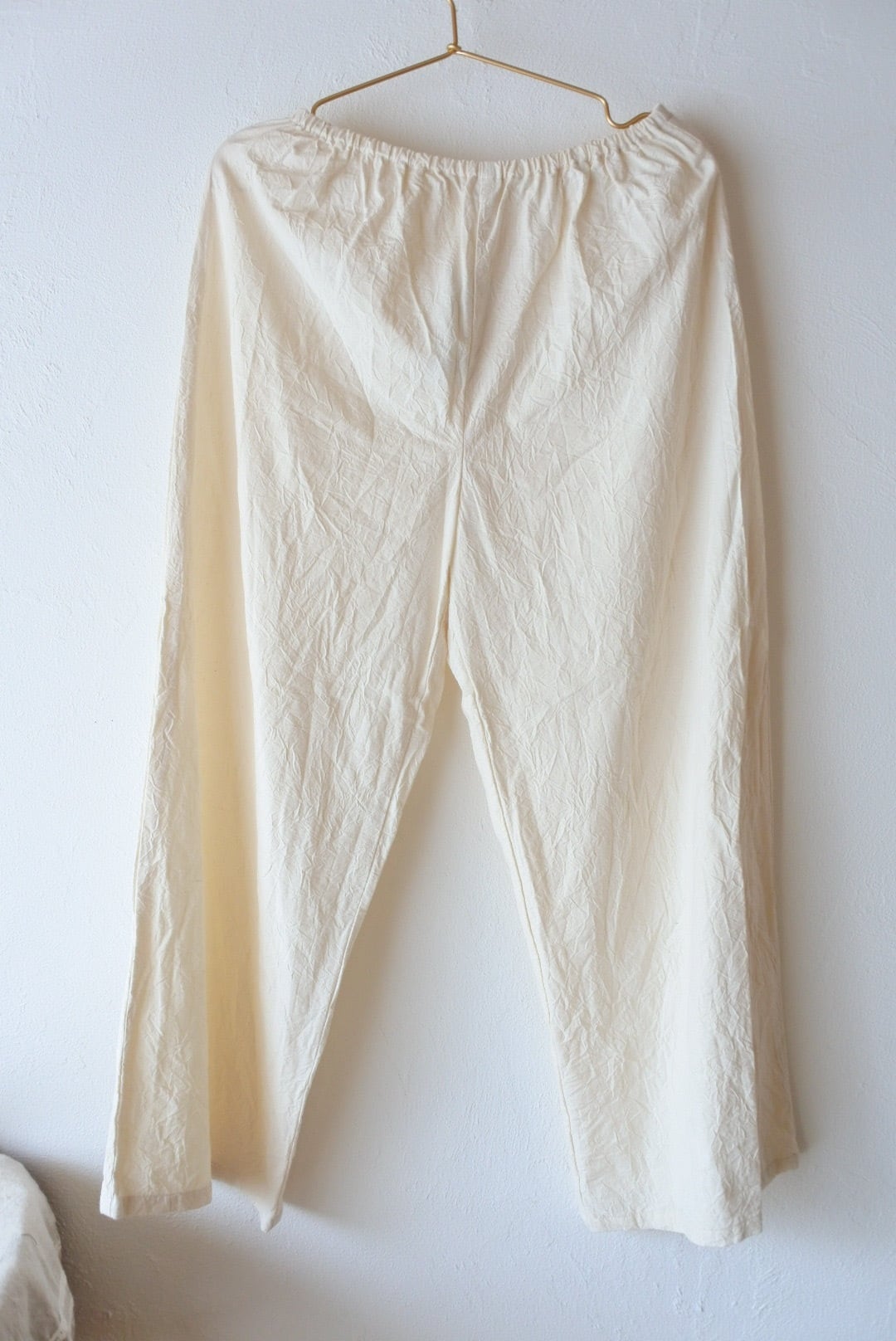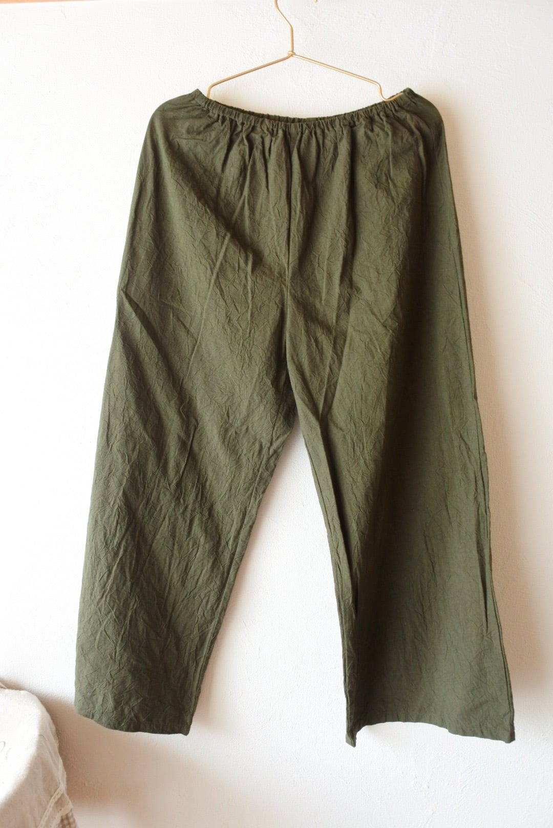 オフ、キナリ以外は透け感も気にならないので1枚で常日着としてもおすすめ。ウエストがゴムのみでポケットがないシンプルな仕様です。