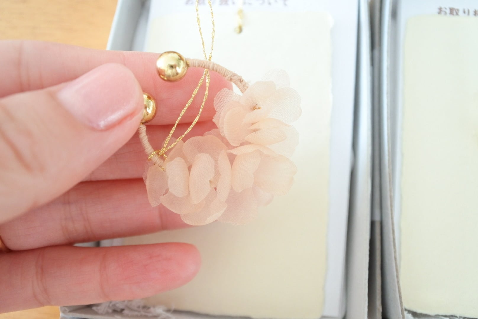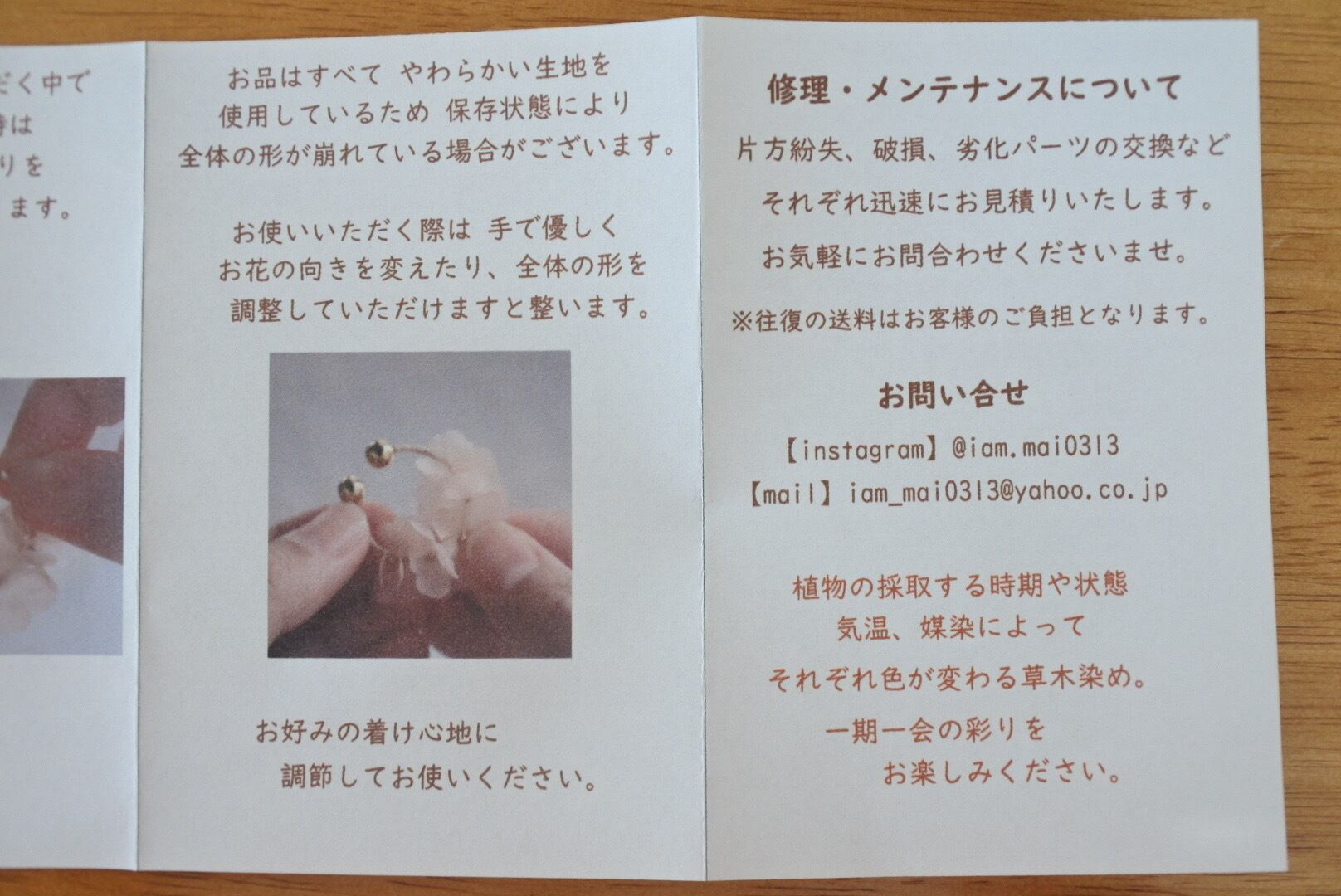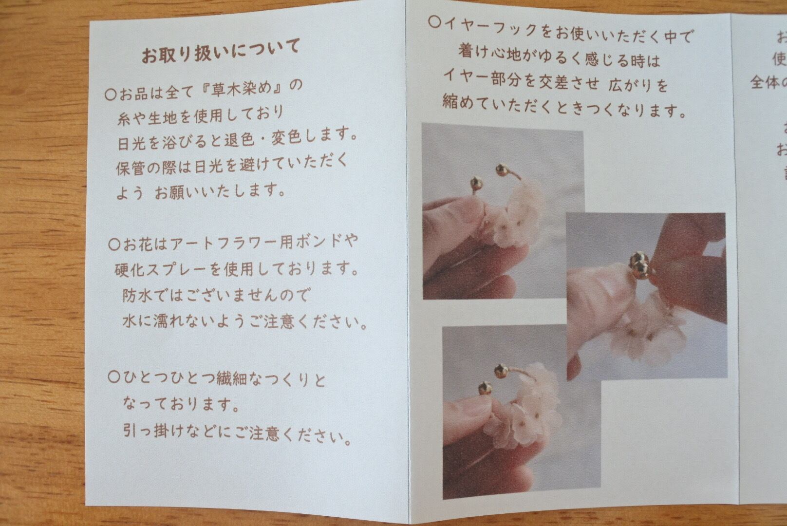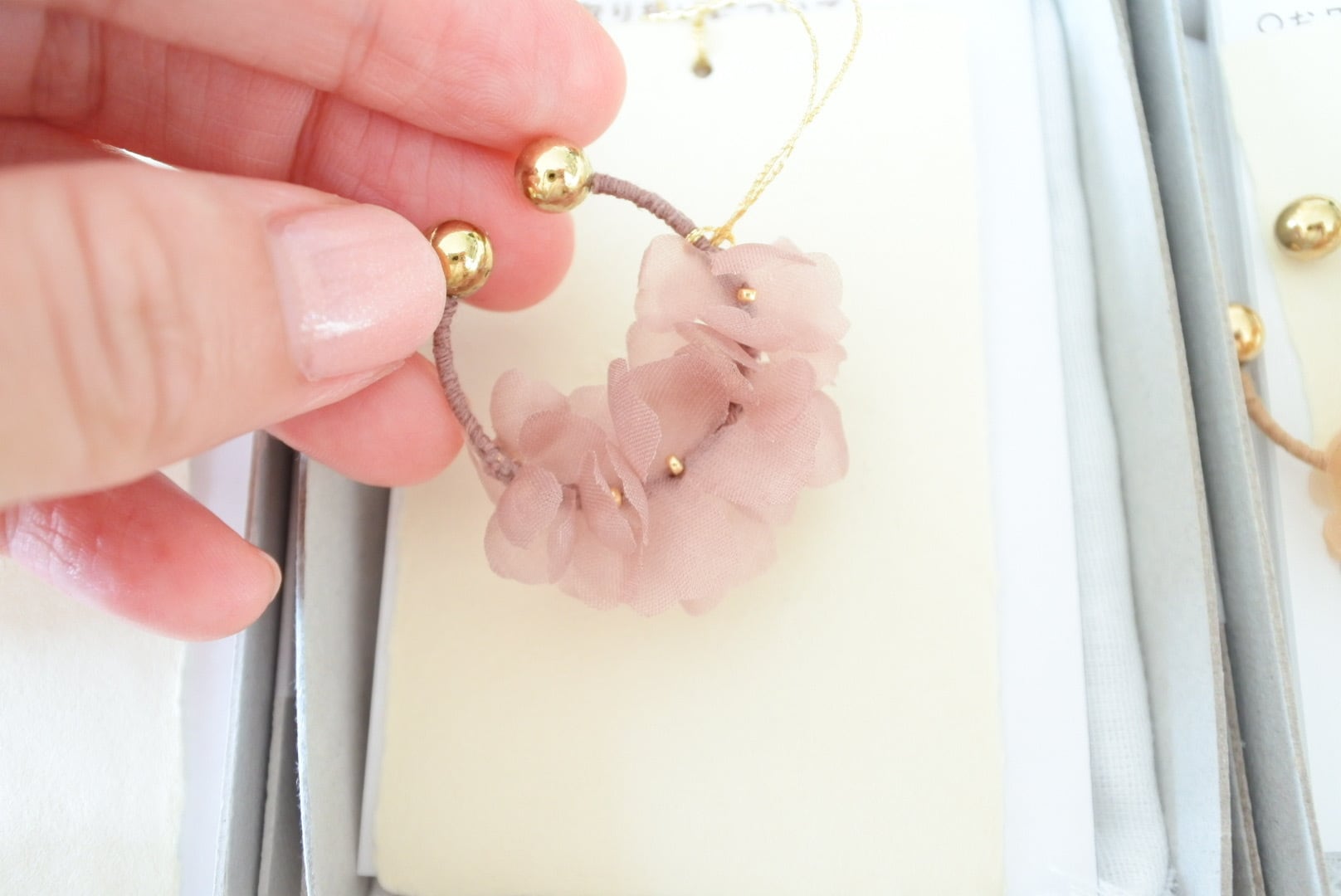 草木染めの糸や生地で作られたアクセサリー
