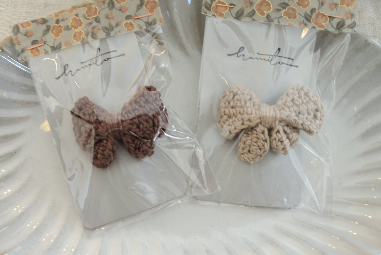 丁寧に編まれた可愛いリボンのヘアクリップです